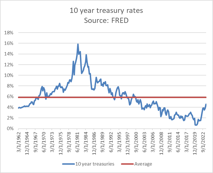The last time interest rates were even at their 60 year average was in 1998.